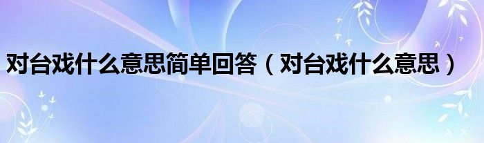 大家好,精选小综来为大家解答以上的问题。对台戏什么意思简单回答,对台戏什么意思很多人还不知道,现在让我们一起来看看吧!