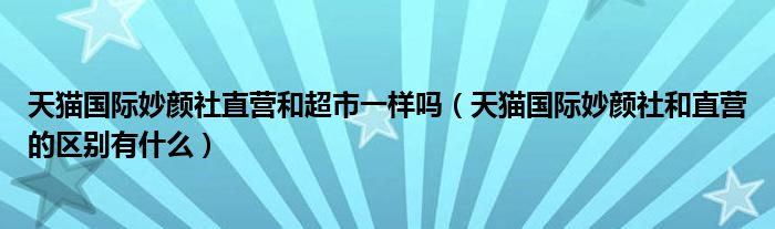 导读 大家好,精选小综来为大家解答以上的问题。天猫国际妙颜社直营和超市一样吗,天猫国际妙颜社和直营的区别有什么很多人还不知道,现在让我们