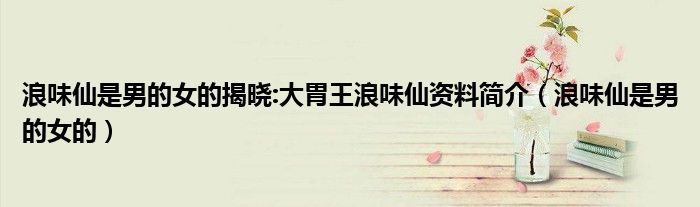 导读 大家好,精选小综来为大家解答以上的问题。浪味仙是男的女的揭晓:大胃王浪味仙资料简介,浪味仙是男的女的很多人还不知道,现在让我们一起