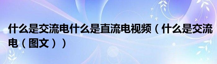 导读 大家好,精选小综来为大家解答以上的问题。什么是交流电什么是直流电视频,什么是交流电,图文很多人还不知道,现在让我们一起来看看吧!查