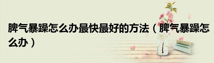 导读 大家好,精选小综来为大家解答以上的问题。脾气暴躁怎么办最快最好的方法,脾气暴躁怎么办很多人还不知道,现在让我们一起来看看吧!脾气暴