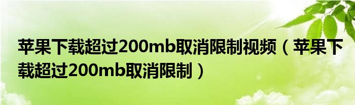 导读 大家好,精选小综来为大家解答以上的问题。苹果下载超过200mb取消限制视频,苹果下载超过200mb取消限制很多人还不知道,现在让我们一起来看