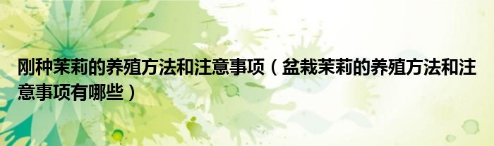 导读 大家好,精选小综来为大家解答以上的问题。刚种茉莉的养殖方法和注意事项,盆栽茉莉的养殖方法和注意事项有哪些很多人还不知道,现在让我们