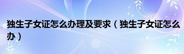导读 大家好,精选小综来为大家解答以上的问题。独生子女证怎么办理及要求,独生子女证怎么办很多人还不知道,现在让我们一起来看看吧!独生子女