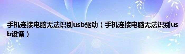 导读 大家好,精选小综来为大家解答以上的问题。手机连接电脑无法识别usb驱动,手机连接电脑无法识别usb设备很多人还不知道,现在让我们一起来看