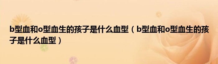 导读 大家好,精选小综来为大家解答以上的问题。b型血和o型血生的孩子是什么血型,b型血和o型血生的孩子是什么血型很多人还不知道,现在让我们一