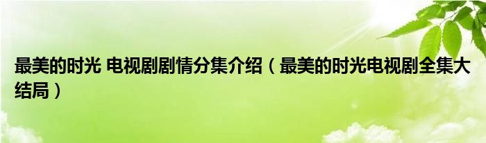 导读 大家好,精选小综来为大家解答以上的问题。最美的时光 电视剧剧情分集介绍,最美的时光电视剧全集大结局很多人还不知道,现在让我们一起来