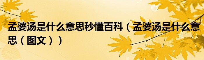 大家好,精选小综来为大家解答以上的问题。孟婆汤是什么意思秒懂百科,孟婆汤是什么意思,图文很多人还不知道,现在让我们一起来看看吧!