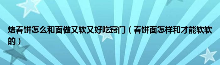 导读 大家好,精选小综来为大家解答以上的问题。烙春饼怎么和面做又软又好吃窍门,春饼面怎样和才能软软的很多人还不知道,现在让我们一起来看看