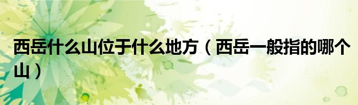 导读 大家好,精选小综来为大家解答以上的问题。西岳什么山位于什么地方,西岳一般指的哪个山很多人还不知道,现在让我们一起来看看吧!很多人喜