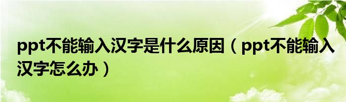 导读 大家好,精选小综来为大家解答以上的问题。ppt不能输入汉字是什么原因,ppt不能输入汉字怎么办很多人还不知道,现在让我们一起来看看吧!方