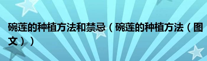 大家好,精选小综来为大家解答以上的问题。碗莲的种植方法和禁忌,碗莲的种植方法,图文很多人还不知道,现在让我们一起来看看吧!