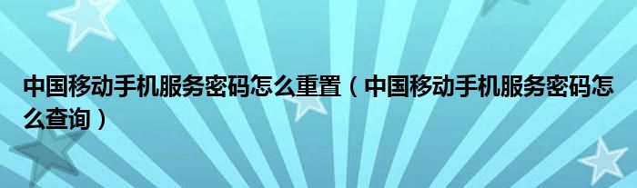 导读 大家好,精选小综来为大家解答以上的问题。中国移动手机服务密码怎么重置,中国移动手机服务密码怎么查询很多人还不知道,现在让我们一起来