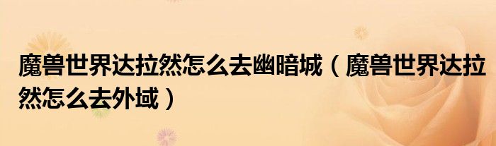 导读 大家好,精选小综来为大家解答以上的问题。魔兽世界达拉然怎么去幽暗城,魔兽世界达拉然怎么去外域很多人还不知道,现在让我们一起来看看吧
