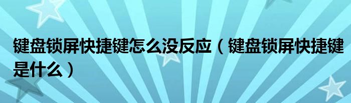 导读 大家好,精选小综来为大家解答以上的问题。键盘锁屏快捷键怎么没反应,键盘锁屏快捷键是什么很多人还不知道,现在让我们一起来看看吧!以戴