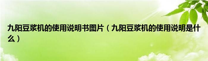 导读 大家好,精选小综来为大家解答以上的问题。九阳豆浆机的使用说明书图片,九阳豆浆机的使用说明是什么很多人还不知道,现在让我们一起来看看