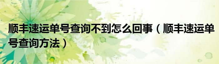 导读 大家好,精选小综来为大家解答以上的问题。顺丰速运单号查询不到怎么回事,顺丰速运单号查询方法很多人还不知道,现在让我们一起来看看吧!