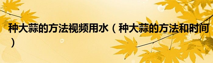 导读 大家好,精选小综来为大家解答以上的问题。种大蒜的方法视频用水,种大蒜的方法和时间很多人还不知道,现在让我们一起来看看吧!种蒜时间应
