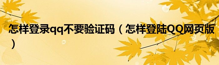 导读 大家好,精选小综来为大家解答以上的问题。怎样登录qq不要验证码,怎样登陆QQ网页版很多人还不知道,现在让我们一起来看看吧!QQ是腾讯开发