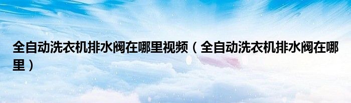 导读 大家好,精选小综来为大家解答以上的问题。全自动洗衣机排水阀在哪里视频,全自动洗衣机排水阀在哪里很多人还不知道,现在让我们一起来看看