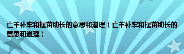 导读 大家好,精选小综来为大家解答以上的问题。亡羊补牢和揠苗助长的意思和道理,亡羊补牢和揠苗助长的意思和道理很多人还不知道,现在让我们一