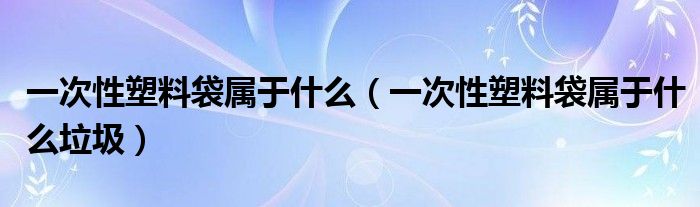 导读 大家好,精选小综来为大家解答以上的问题。一次性塑料袋属于什么,一次性塑料袋属于什么垃圾很多人还不知道,现在让我们一起来看看吧!一次