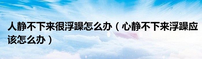 导读 大家好,精选小综来为大家解答以上的问题。人静不下来很浮躁怎么办,心静不下来浮躁应该怎么办很多人还不知道,现在让我们一起来看看吧!有