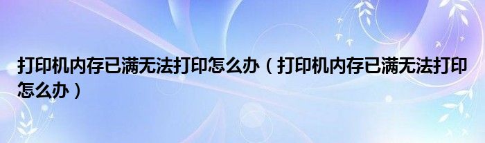 导读 大家好,精选小综来为大家解答以上的问题。打印机内存已满无法打印怎么办,打印机内存已满无法打印怎么办很多人还不知道,现在让我们一起来