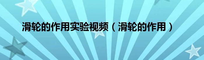 大家好,精选小综来为大家解答以上的问题。滑轮的作用实验视频,滑轮的作用很多人还不知道,现在让我们一起来看看吧!