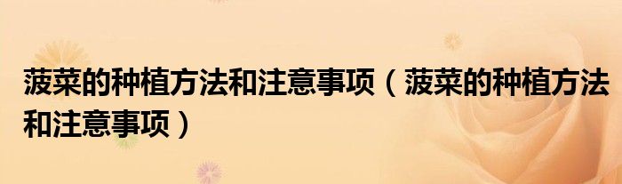 导读 大家好,精选小综来为大家解答以上的问题。菠菜的种植方法和注意事项,菠菜的种植方法和注意事项很多人还不知道,现在让我们一起来看看吧!