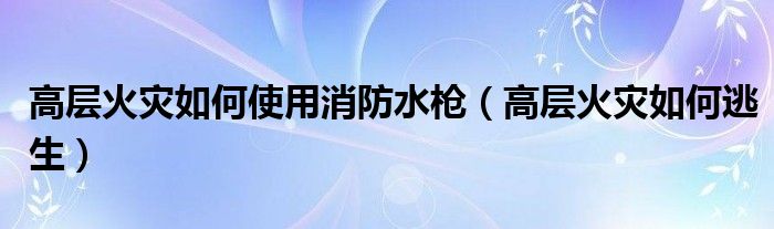 导读 大家好,精选小综来为大家解答以上的问题。高层火灾如何使用消防水枪,高层火灾如何逃生很多人还不知道,现在让我们一起来看看吧!高层建筑