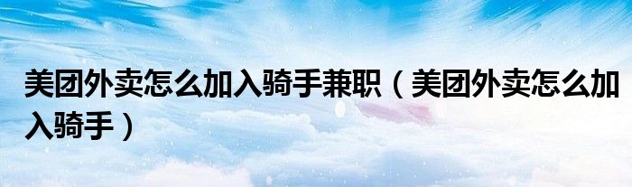 导读 大家好,精选小综来为大家解答以上的问题。美团外卖怎么加入骑手兼职,美团外卖怎么加入骑手很多人还不知道,现在让我们一起来看看吧!作为