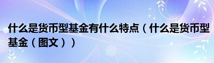 导读 大家好,精选小综来为大家解答以上的问题。什么是货币型基金有什么特点,什么是货币型基金,图文很多人还不知道,现在让我们一起来看看吧!