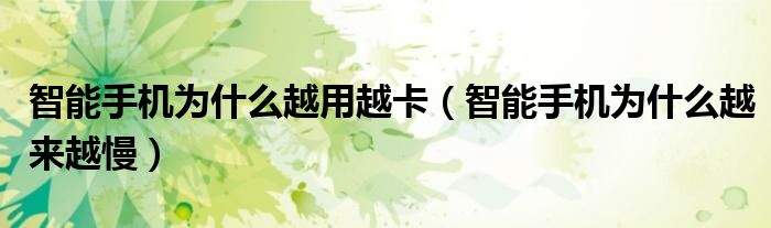 导读 大家好,精选小综来为大家解答以上的问题。智能手机为什么越用越卡,智能手机为什么越来越慢很多人还不知道,现在让我们一起来看看吧!智能
