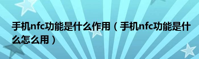 导读 大家好,精选小综来为大家解答以上的问题。手机nfc功能是什么作用,手机nfc功能是什么怎么用很多人还不知道,现在让我们一起来看看吧!NFC