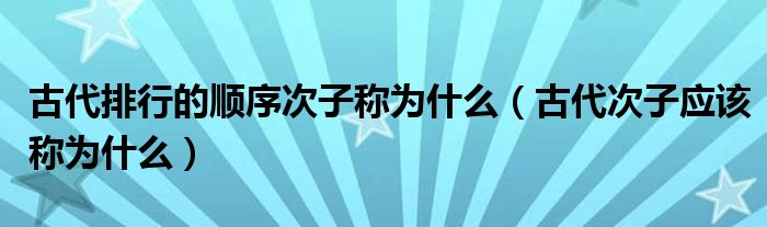 导读 大家好,精选小综来为大家解答以上的问题。古代排行的顺序次子称为什么,古代次子应该称为什么很多人还不知道,现在让我们一起来看看吧!在