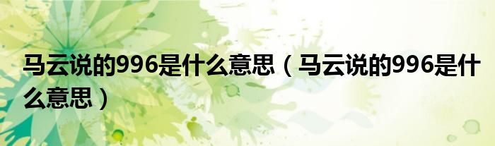 导读 大家好,精选小综来为大家解答以上的问题。马云说的996是什么意思,马云说的996是什么意思很多人还不知道,现在让我们一起来看看吧!最近马