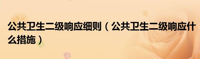 导读 大家好,精选小综来为大家解答以上的问题。公共卫生二级响应细则,公共卫生二级响应什么措施很多人还不知道,现在让我们一起来看看吧!公共