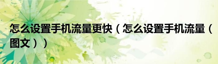 大家好,精选小综来为大家解答以上的问题。怎么设置手机流量更快,怎么设置手机流量,图文很多人还不知道,现在让我们一起来看看吧!