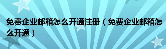 导读 大家好,精选小综来为大家解答以上的问题。免费企业邮箱怎么开通注册,免费企业邮箱怎么开通很多人还不知道,现在让我们一起来看看吧!1 开