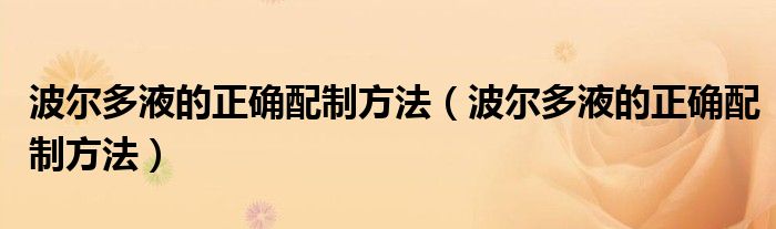 导读 大家好,精选小综来为大家解答以上的问题。波尔多液的正确配制方法,波尔多液的正确配制方法很多人还不知道,现在让我们一起来看看吧!波尔