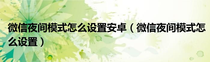 大家好,精选小综来为大家解答以上的问题。微信夜间模式怎么设置安卓,微信夜间模式怎么设置很多人还不知道,现在让我们一起来看看吧!