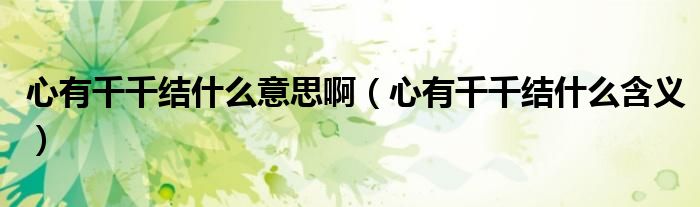 导读 大家好,精选小综来为大家解答以上的问题。心有千千结什么意思啊,心有千千结什么含义很多人还不知道,现在让我们一起来看看吧!心中有一个