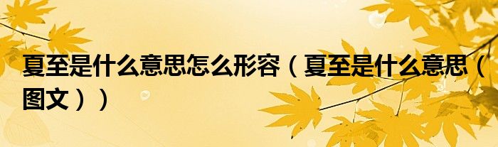 导读 大家好,精选小综来为大家解答以上的问题。夏至是什么意思怎么形容,夏至是什么意思,图文很多人还不知道,现在让我们一起来看看吧!查看视