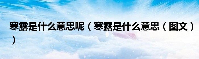 导读 大家好,精选小综来为大家解答以上的问题。寒露是什么意思呢,寒露是什么意思,图文很多人还不知道,现在让我们一起来看看吧!查看视频本文