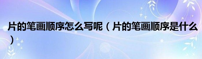大家好,精选小综来为大家解答以上的问题。片的笔画顺序怎么写呢,片的笔画顺序是什么很多人还不知道,现在让我们一起来看看吧!