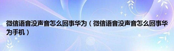 导读 大家好,精选小综来为大家解答以上的问题。微信语音没声音怎么回事华为,微信语音没声音怎么回事华为手机很多人还不知道,现在让我们一起来