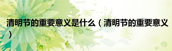 导读 大家好,精选小综来为大家解答以上的问题。清明节的重要意义是什么,清明节的重要意义很多人还不知道,现在让我们一起来看看吧!清明节通常