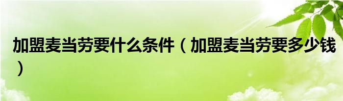 大家好,精选小综来为大家解答以上的问题。加盟麦当劳要什么条件,加盟麦当劳要多少钱很多人还不知道,现在让我们一起来看看吧!