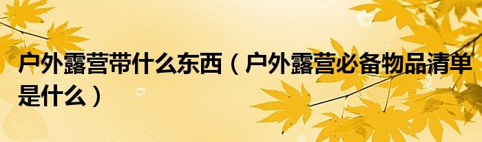 导读 大家好,精选小综来为大家解答以上的问题。户外露营带什么东西,户外露营必备物品清单是什么很多人还不知道,现在让我们一起来看看吧!露营